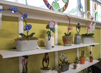 Stained-glass flowers are a popular item with customers at Adams’ Glass Studio.